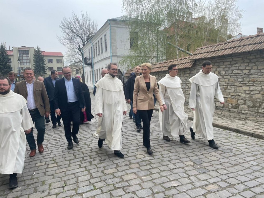 28 kwietnia 2022 r. Kamieniec Podolski gościł wybitnych gości z Polski. Miasto odwiedziła Pierwsza Dama Rzeczypospolitej Polskiej, Pani Agata Kornhauser-Duda. Głównym celem jej podróży było spotkanie z uchodźcami wojennymi, którzy znaleźli schronienie w paulińskim klasztorze w Kamieńcu Podolskim. Od początku wojny na Ukrainie Zakon Paulinów przez posługę o.Justyna Miszczenko, przełożonego kamienieckiego klasztoru wraz ze współbraćmi zapewnił schronienie i wyżywienie setkom osób, którzy w celu ratowania życia byli zmuszeni opuścić swoje domy. Od ponad dwóch miesięcy w klasztorze mieszka około 60 osób, głównie kobiety z dziećmi z różnych zakątków Ukrainy. Ci, którzy stracili domy i uciekli m.in. z: Kijowa, Browarów, Hostomelu, Czernihowa, Sum, Chersonia oraz Mariupola mogą czuć się bezpiecznie w Kamieńcu Podolskim, gdzie nie toczą się walki. Wśród uchodźców znajdują się nie tylko katolicy, ale również prawosławni i wyznawcy innych religii. Dla wielu z nich pierwszy kontakt ze Wspólnotą Kościoła Katolickiego odbył się właśnie w czasie wojny, gdy spotkali się z bezwarunkową akceptacją przekraczając próg paulińskiego klasztoru w Kamieńcu Podolskim.
