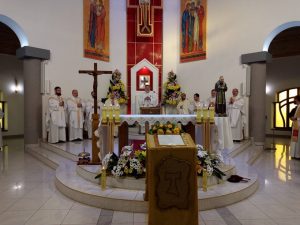 Wyjątkowo uroczyście obchodziliśmy w tym roku w Kijowie nasz parafialny odpust – NMP Matki Kościoła. Otóż decyzją ordynariusza, ks. bp Witalija Krywickiego, nasz kościół parafialny stał się Sanktuarium św. o. Pio. Święto parafialne zostało połączone z wprowadzeniem relikwii św. o. Pio i poświęceniem specjalnie przygotowanej bocznej kaplicy. Jako relikwię otrzymaliśmy od braci z Prowincji Foggia chustę (bandaż) ze śladami krwi ze stygmatów.