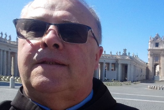 Na zdjęciu: o. Szczepana na pustym Placu Św. Piotra na Watykanie (25.03.2020).