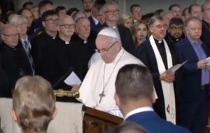 Cieszę się, że mogę spotkać się z wami, na tej ziemi charakteryzującej się urzeczywistnianiem drogi szacunku, współpracy i przyjaźni między różnymi Kościołami chrześcijańskimi, którym udało się stworzyć jedność, zachowując charakterystyczne dla siebie bogactwo i to, co je wyróżnia. Odważę się powiedzieć, że jest to „ekumenizm żywy” i stanowi jedną z cech charakterystycznych Łotwy. Bez wątpienia jest to powód do nadziei i dziękczynienia.