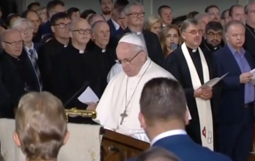 Dziękuję arcybiskupowi Jānisowi Vanagsowi, że otworzył nam drzwi tego domu, aby mogło się odbyć nasze spotkanie modlitewne. Ten dom katedralny od ponad 800 lat gości życie chrześcijańskie tego miasta. Jest on wiernym świadkiem naszych braci, którzy tutaj przybywali, by oddawać cześć Bogu, modlić się, podtrzymywać nadzieję w chwilach cierpienia i znaleźć odwagę, aby stawić czoła okresom pełnym niesprawiedliwości i cierpienia. Dziś nas gości, ponieważ Duch Święty stale tworzy osobiście między nami więzi komunii, a tym samym czyni także i nas budowniczymi jedności pośród naszego ludu, aby nasze różnice nie stawały się podziałami. Pozwólmy, aby Duch Święty przyoblekł nas orężem dialogu, zrozumienia, dążeniem do wzajemnego szacunku i braterstwa (por. Ef 6, 13-18).
