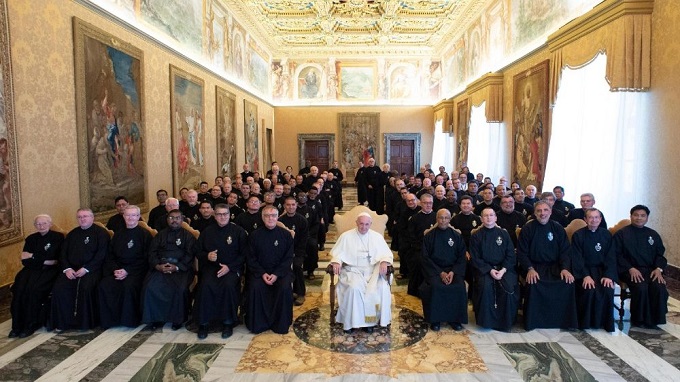 cieszę się, że mogę was spotkać z okazji waszej Kapituły Generalnej i dziękuję Przełożonemu za jego słowa. W tych dniach wasze refleksje były prowadzone tematem „Odnowa naszej misji: Wdzięczność, Proroctwo i Nadzieja”. Te trzy słowa: wdzięczność, proroctwo i nadzieja wyrażają ducha, którym pragniecie pobudzić swoje Zgromadzenie do odnowienia misji. Prawdziwie, oprócz wyboru zarządu Instytutu, proponujecie podjęcie nowej drogi formacji permanentnej dla waszych wspólnot, zakorzenionej w doświadczeniu codziennego życia; a także zamierzacie dokonać rozeznania w pastoralnym podejściu do młodego pokolenia.