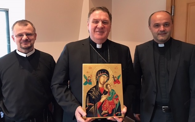 W czasie wizytacji prowincjalnej nie mogło zabraknąć i tego braterskiego spotkania, tym bardziej, że Ks. Kardynał wielokrotnie odwiedzał Polskę i bardzo dobrze zna osobiście wielu naszych Współbraci. Została mu wręczona kopia ikona Matki Bożej Nieustającej Pomocy wykonana przez o. Eugeniusza Karpiela CSsR, z ponowieniem obietnicy modlitewnego wsparcia przez Prowincję Warszawską jego służby dla Kościoła katolickiego w USA i Ojca Świętego.