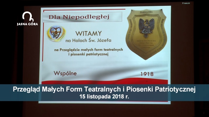 Przegląd Małych Form Teatralnych i Piosenki Patriotycznej, przygotowany przez wrocławską prowincję Zgromadzenia Sióstr św. Józefa odbył się w czwartek, 15 listopada na Jasnej Górze. Przegląd poświęcony był 100-leciu odzyskania przez Polskę niepodległości.
