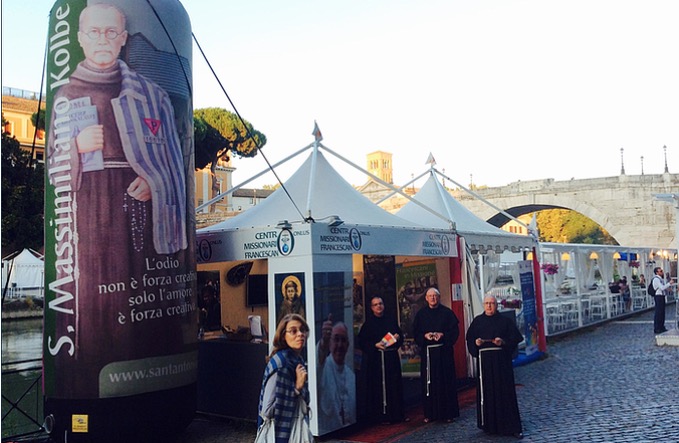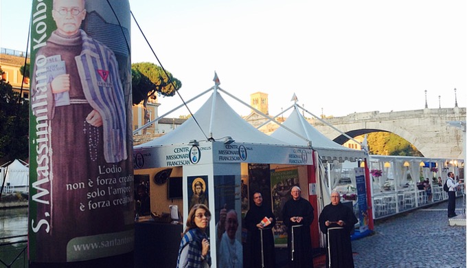 Święty Maksymilian Kolbe i święta Klara, których duże fotografie ozdobiły oba brzegi Tybru na wysokości Wyspy Tiberina, patronują misji franciszkanów w samym centrum nocnego życia rzymian i turystów.
