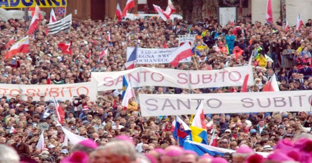 Podczas pogrzebu Papieża Polaka na Placu św. Piotra, 8 kwietnia 2005 roku, na transparentach wyrażona została wola „Santo subito” – święty natychmiast.  Okrzyki tej samej treści były też skandowane przede wszystkim przez młodzież. A jako jeszcze ówczesny dziekan kolegium kardynalskiego kard. Joseph Ratzinger mówił z przekonaniem, że Jan Paweł II: „Nasz umiłowany Ojciec Święty błogosławi nam z okna domu Ojca”.