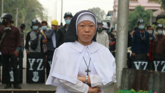 Cały świat obiegło zdjęcie siostry Ann Rose Nu Tawng, która klękała przed pacyfikującymi demonstracje policjantami. – Jeśli chcecie strzelać do tłumu, najpierw zastrzelcie mnie – powiedziała do policjantów zakonnica.