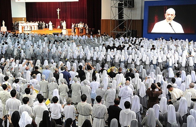 Do radosnego świadectwa miłości Chrystusa i Kościoła, czerpiącego z Bożego miłosierdzia i wyrażającego się w wiernym życiu radami ewangelicznymi zachęcił papież Franciszek zakonnice i zakonników Korei. Spotkał się z nimi w audytorium charyzmatycznego ośrodka Szkoła Miłości w Kkottongnae. Zgromadziło się tam 5 tys. osób konsekrowanych.