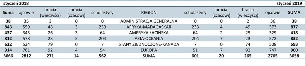 W dniu wczorajszym (02.02.2019) administracja generalna podała statystykę Zgromadzenia Misjonarzy Oblatów Maryi Niepokalanej. Zestawienie światowe ujęto w kilka grup tematycznych. Dane obejmują informacje, jakie spływały do domu generalnego przez cały rok. Przyjęto również metodę porównawczą, która ukazuje trendy rozwoju Zgromadzenia, a także rejony, w których doświadczamy regresu. Problem stanowił fakt, że wielu oblatów migruje, przebywając często poza swoimi jurysdykcjami, do których przynależą.