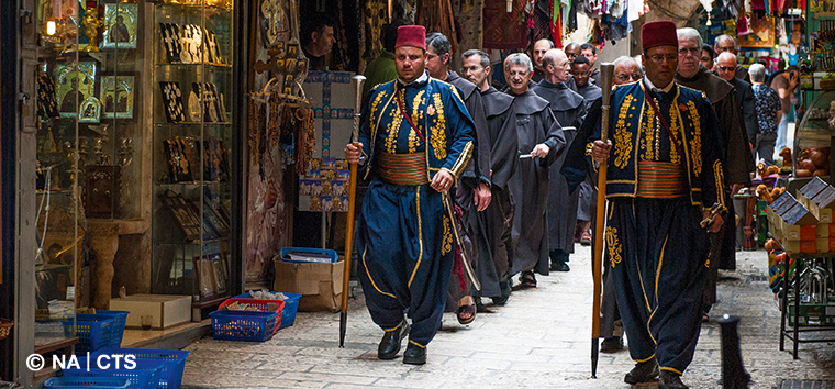 Wielki Post to wyjątkowy czas w roku liturgicznym, w którym katolicy na całym świecie przygotowują się do przeżywania najważniejszego święta chrześcijańskiego – Zmartwychwstania Pańskiego. W Jerozolimie Wielki Post przybiera szczególną formę ze względu na fakt, że ogniskuje się tam pobożność chrześcijan wszystkich denominacji i obrządków. Katolicy mają prawo do sprawowania obrzędów o wyjątkowym charakterze w soboty Wielkiego Postu. To szereg wydarzeń liturgicznych polegających na uroczystym ingresie do bazyliki Grobu Świętego Patriarchy Jerozolimy oraz na następującej po nim uroczystej procesji. W każdą sobotę Wielkiego Postu, wczesnym popołudniem, według ściśle przestrzeganego harmonogramu z klasztoru Najświętszego Zbawiciela franciszkanie z Kustodii Ziemi Świętej wyruszają do siedziby Patriarchatu Łacińskiego. Na czele kroczą tak zwani „kawas” z ozdobnymi laskami, ze srebrną gałką u góry, a dolną częścią okutą metalem. Ich rytmiczne i mocne uderzenia w brukowane jerozolimskie uliczki, oznajmiają nadchodzących braci, a przy tym dodają powagi orszakowi. Otwierający procesję mężczyźni ubrani są w tradycyjne stroje tureckiej gwardii z epoki osmańskiej. Dopełnieniem tego stroju jest szabla przy lewym boku.