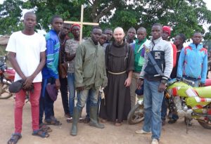 Sytuacja w Mardoché była podobna do tej w Mandjo. Katechista który nas przyjął bardzo się o nas zatroszczył. Na dach kaplicy zaciągnął plandekę, by bambusowy dach nie przeciekał, przygotowano nam posiłek, udostępniono podobną toaletę. Było też kilku wiernych którzy przynieśli coś dodatkowego do jedzenia – kukurydzę lub orzeszki ziemne. Tutaj odwiedził nas także Jean de Dieu, który przywiózł nam nieco wina, które rozlało nam się w plecaku. A bez wina Eucharystii by nie było. Więc nas brat z Boali poratował. Wieczorem jak co dzień, zasiedliśmy do modlitwy, tym razem z sąsiadami. Brak tłumów dał nam sposobność by uczynić też małe podsumowanie tych dni. Chłopcy wspominali o wyjątkowym doświadczeniu, o bliskości z ubogimi, o trudzie podróży. Co niektórzy wspomnieli o wodzie w Ngodoforo. Jeden nawet stwierdził że widząc taka wodę zrezygnował wówczas z kąpieli! Doceniali hojność goszczących nas. Jestem przekonany, że to doświadczenie drogi, niedostatku i zależności od drugiego człowieka pokazało im dużo więcej z duchowości franciszkańskiej niż całoroczna formacja podczas naszych spotkań w Bimbo…