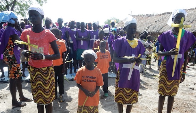 Tak jak to było ustalane wcześniej, święta Wielkanocne miałem spędzić w Phom (New Fangak). Jeszcze krótka podróż do Wanglel na 2 dni (30km) i oczekiwanie na łódź. Plecak przygotowany tylko łodzi jeszcze nie ma. Jak ktoś lubi mieć wszystko na czas, to niestety nie jest to miejsce dla niego. Odpłynie, może jutro, może pojutrze, a może popojutrze. Rano dowiedziałem się, że łódź ma wypłynąć. Po godzinie przyszła do mojego domu Nyador, córka Teresy, która jest bardzo aktywna w naszym kościele. Po chwili, powiedziała – płyniemy razem. Zdziwiło mnie to, że mając 10 lat, płynie sama do Phom, aby odwiedzić swoją chorą siostrę. Łódź się opóźnia, a tu trzeba coś zjeść. Zabrałem Nyador na market i kupiliśmy sobie walwal, sorgo z zsiadłym mlekiem. O około 15.00 udało nam się dostać na łódź. Siedzimy na jakiś workach, niewygodne, ale nie jest źle. Wypłynęliśmy o 16.00 – zapłynęliśmy o północy. Oczywiście w łodzi było kupę śmiechu, bo Nyador została moją adoptowaną córką – nyada, radosna i żywiołowa.
