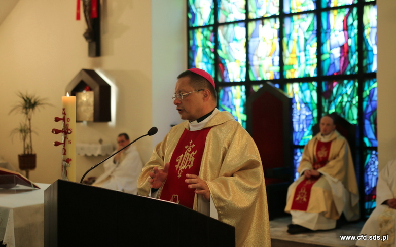 Uroczystej Eucharystii przewodniczył i homilię wygłosił bp Grzegorz Ryś. Mszę Świętą koncelebrowali również biskupi: biskup diecezji lipawskiej (Łotwa) bp Viktors Stulpins, który był jednym z uczestników dwuletniej formacji oraz biskup pomocniczy archidiecezji mińsko-mohylewskiej bp Jurij Kasabucki (w sobotę, 23 maja, udzielił święceń diakonatu i prezbiteratu salwatoriańskim akolitom i diakonom) oraz przełożony polskiej prowincji salwatorianów ks. Piotr Filas.