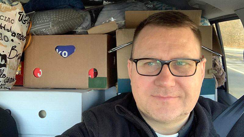 Transport po dary zmierza do Zahutynia. Dziś przywieziono pomoc z Kędzierzyna-Koźla. Superior Delegatury Misjonarzy Oblatów MN, o Witalij Podolan OMI, dostarczył pomoc humanitarną do oblackiej parafii w Obuchowie.